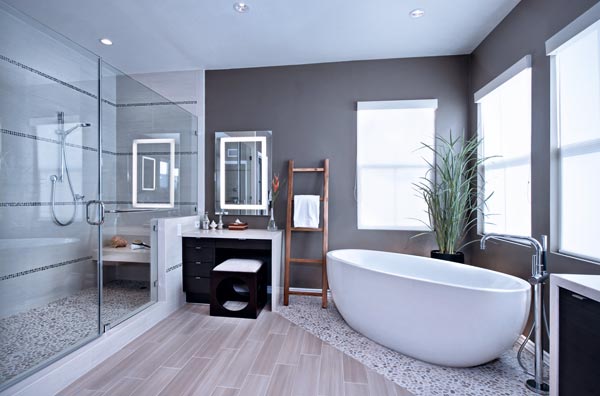 Планируя ванное помещение, помните, что оно должно также быть и просторным, то есть вам не должно быть тесно в нём. Постарайтесь расположить все необходимые предметы в помещении в пределах досягаемости из центра комнаты, независимо от её размера.