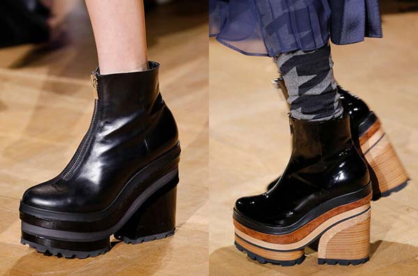 Подошва «на стероидах». Глядя на модели обуви из коллекций «зима – осень 2017-2018» возникает вопрос: будет ли предел массивности подошвы? В этом сезоне точно нет. Гидрообъемные платформы, танкетки и каблуки заняли одну из центральных позиций в модных показах.