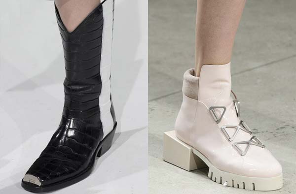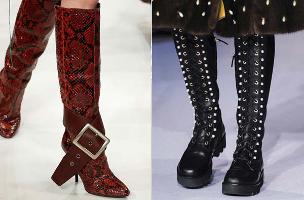 Женственная брутальность. Заклёпки, шипы, пряжки, ремешки, шнуровку в нарочито грубом формате дизайнеры объединили с нежными женственными моделями сапожек и ботинок. Получилось ярко, дерзко, но чертовски привлекательно. С такой парой в этом сезоне вы точно будете в тренде.