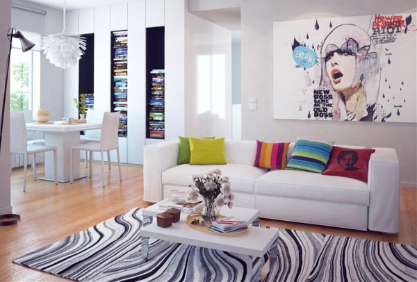 Но выход есть и в данной ситуации. Так, если вам очень хочется оформить интерьер в стиле поп-арт, но у вас не слишком большие для этого помещения, можно подобрать меньшее количество красок и приобрести мебель небольших размеров.