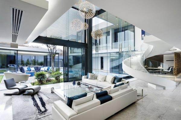 В общем, вся гостиная должна быть гладкой, глянцевой и высокотехнологичной.